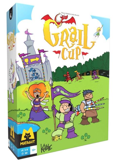 Arriverez-vous entier à la ligne d’arrivée ? Grail Cup est réalisé par le célèbre Game Designer Bruno Faidutti et illustré par John Kovalic lui-même. Dans le jeu, vous essaierez d’abord d’atteindre le château, en piégeant vos ennemis en cours de route et même en influençant un puissant dragon afin qu’il puisse éloigner vos adversaires. Un système astucieux de sélection de rôles cachés, rappelant celui de Citadelles, vous permettra de bluffer votre chemin vers la victoire. Un jeu de course léger et amusant qui se joue en 30mn maximum. À chaque tour, vous sélectionnez un rôle qui définira qui vous incarnez et quelle action vous allez entreprendre. L’ordre du tour est défini par le rôle que vous avez sélectionné, et agir en premier ou en dernier peut avoir des conséquences énormes.