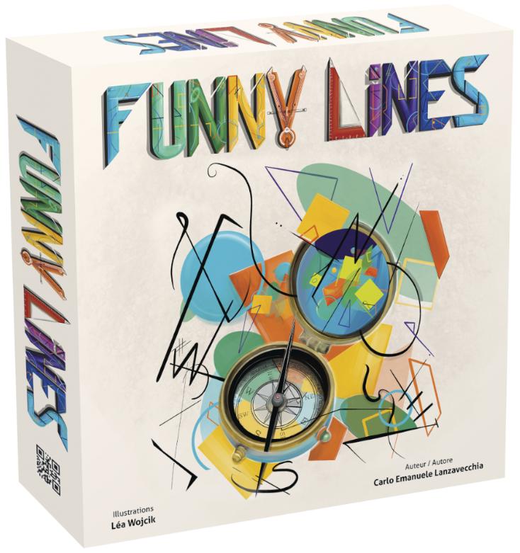 Funny Lines est un super jeu d’ambiance qui peut se jouer individuellement de trois à huit joueurs, ou en deux équipes de n’importe quelle taille. Achetez des indices qui révèleront petit à petit l’image cachée. Soyez plus rapide que les autres mais ne gaspillez pas vos précieux Fricos. Suspens et rires garantis ! Le principe du jeu est très simple. Sur le recto des cartes sont représentés des objets et des animaux dessinés uniquement à partir de formes géométriques. Rassurez-vous, Vous ne devez pas être un As en géométrie pour jouer à Funny Lines ! Sur le verso des cartes sont représentés les formes utilisées et le coût de chacune spécifique à cette carte. Les coûts sont de 1, 2 ou 3 Fricos. Les joueurs (ou les équipes) vont acheter des indices (des formes) qui, dessinés sur les tableaux, révèleront progressivement l’image recherchée à tous les joueurs. Le but du jeu est d’être le premier joueur – ou la première équipe – à deviner l’image cachée. Chacun peut à tout moment tenter de deviner, mais attention car chaque essai coûte des Fricos qui risquent de finir dans la poche de vos adversaires. Il y a plusieurs différence entre le jeu en individuel ou en deux équipes. La principale est que les deux tableaux sont utilisés simultanément dans le jeu en équipes. Tous les joueurs voient donc deux tableaux et peuvent les superposer mentalement pour découvrir l’image plus rapidement.