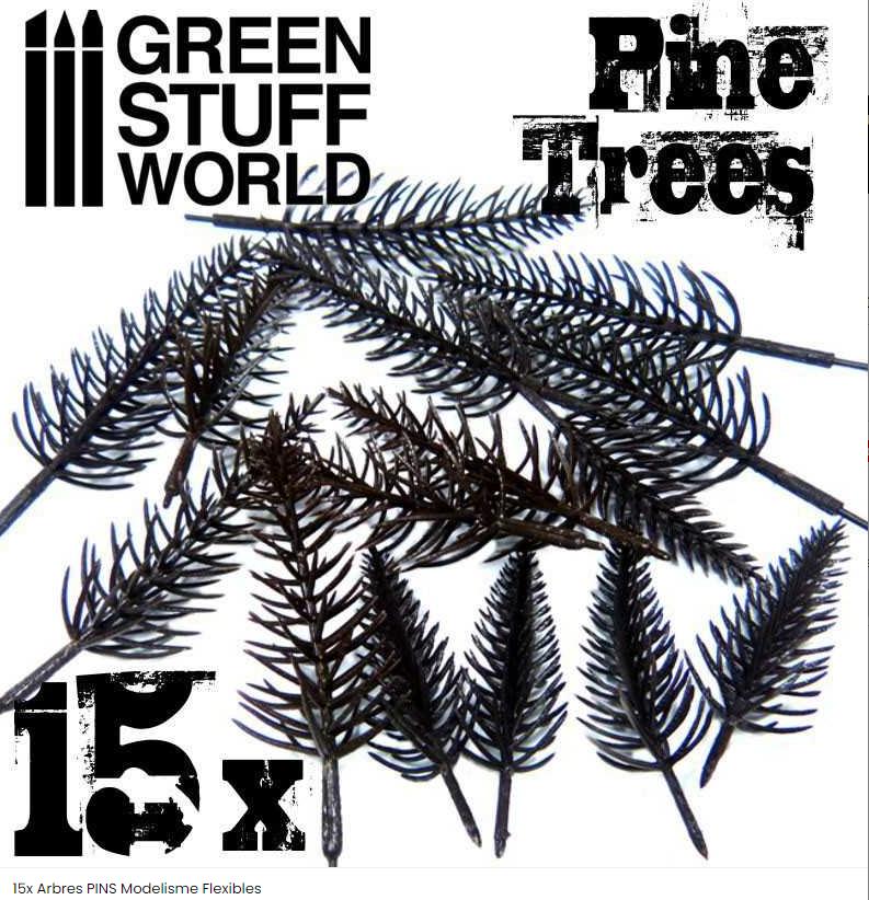 15x Arbres PINS flexibles de Modelisme Comprend 3 types d’arbres pins. Les branches sont flexibles et peuvent être courbés pour modifier sa forme. Nous vous recommandons d’utiliser abondante colle blanche pour coller sur les branches mousee de feuillage, feuilles, etc ... Sur les 2 types de colle blanche existante, nous recommandons la plus rapide. Enlever l’excès et répéter autant de fois que nécessaire pour obtenir le résultat souhaité. Après avoir ajouté le feuillage, appliquer la colle en spray ou laque aérosol à fournir une protection supplémentaire. Cet ensemble comprend 5 pins en 12cm + 5 en 10cm + 5 en 8cm
