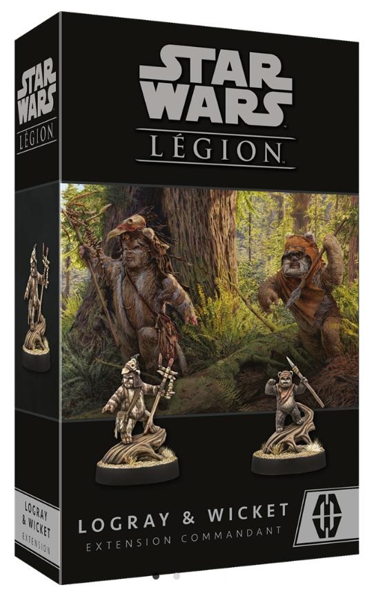 Logray était le shaman Ewok de son village. Reconnu pour maintenir l’harmonie entre sa tribu et les esprits forestiers d’Endor, il a d’abord cru que C-3PO était un dieu quand les rebelles arrivèrent pour la première fois sur la lune forestière. Après une démonstration furieuse de la ‘magie’ du dieu, Logray ordonna la libération des rebelles captifs puis se joignit à leur lutte contre l’Empire. Wicket W. Warrick était un Ewok particulièrement courageux et débrouillard. Audacieux et curieux, il aida à la conception des diverses méthodes utilisées par son peuple pour surpasser l’avantage technologique de l’Empire, y compris de leurs imposants marcheurs. La boîte contient 2 figurines en plastique à peindre et monter, 4 cartes Unité, 8 cartes Commandement, 5 cartes Amélioration, 2 planches de pions et 1 feuillet d’instructions. Nécessite une boîte de base de Star Wars Légion.