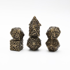 Set de 7 dés métal 1 x D4 1 x D6 1 x D8 1 x D10 (unité) 1 x D10 (dizaine) 1 x D12 1 x D20 Taille D6 pour référence : 16mm Boîte de rangement acrylique fourni