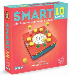 Smart 10 Famille, le quiz nomade où tout est inclus dans le boîtier. En mode solo ou par équipe, parents et enfants se défient et se complètent pour remporter la victoire ! A chaque question, 10 réponses sont possibles. Le quiz où tout le monde répond à la même question et où chacun a une chance de trouver une réponse ! Tout le monde joue ensemble, sur pied d’égalité. A chaque question, 10 réponses possibles. À ton tour, choisis une réponse, enlève le cache, tu as trouvé ? Récupère le point et passe le boîtier au joueur suivant. Tu peux aussi décider de passer ton tour… car si ta réponse est fausse, tu perds tous les points de cette manche !