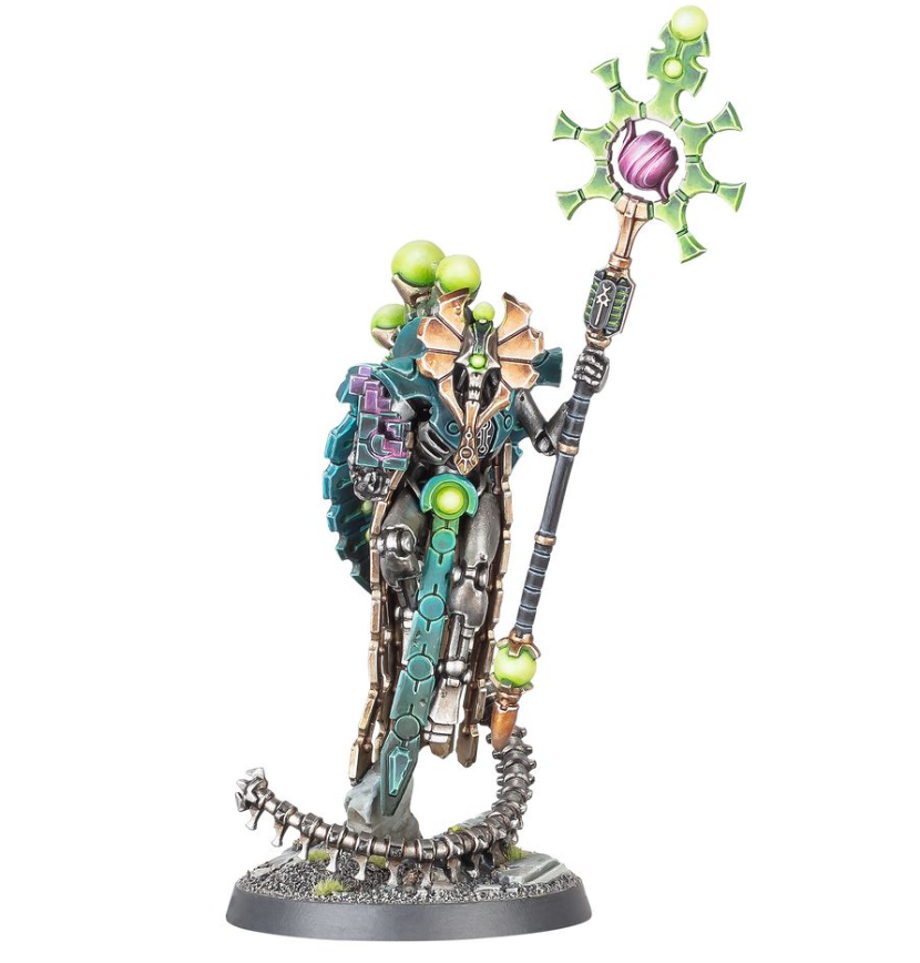 Orikan est un maître astromancien, un Cryptek nécron qui se sert de ses connaissances des conjonctions astrales pour prédire le cours de la bataille et pour se renforcer à l’aide d’énergies cosmiques. Il complète ces talents par des capacités chronomantques qui lui permettent de voir les événements avant qu’ils surviennent et d’alterer les schémas du passé, ce qui l’aide à éviter les attaques et à asséner ses propres coups avec des effets dévastateurs. Grâce à ses examens méticuleux du temps, le Devin a interféré dans des événements cruciaux et des détails insignifiants de l’histoire pour guider les Nécrons vers l’avenir qui lui convenait. Ce kit plastique permet d’assembler Orikan le Devin, le plus grand Chronomancien de toutes les dynasties des Nécrons. Maintenu en l’air par sa colonne vertébrale préhensile, ce personnage légendaire porte un chronomètron actif ainsi que le Bâton d’Anachronie, un instrument temporel existant une demi-seconde avant l’instant présent et frappant avant même que son porteur bouge. Orikan est orné de sphères surnaturelles qui l’aident dans ses calculs divinatoires. Il est drapé d’une cape segmentée et arbore une impressionnante couronne digne d’un haut Cryptek. Ce kit est composé de 15 éléments en plastique et est fourni avec un Socle Rond Citadel de 40mm. Cette figurine est fournie non peinte et nécessite assemblage – nous recommandons d’employer la Colle Plastique Citadel et la peinture Citadel.