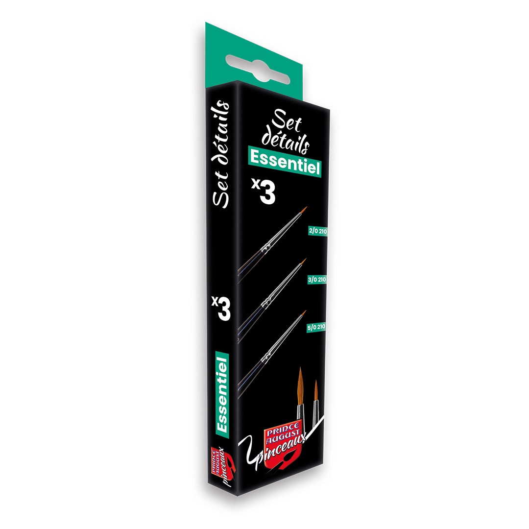 Les Sets de pinceaux ESSENTIEL réunissent les indispensables pour l’ensemble de vos applications. Le Set Détails CPE2, une sélection de pinceaux pour vos travaux les plus fins, pour une application précise et dans les moindres détails. 2/0 210 : Pinceau Martre Poil Long 3/0 210 : Pinceau Martre Poil Long 5/0 210 : Brosse plate Synthétique
