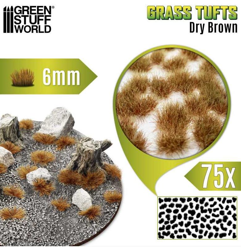 Tuft 6mm - Brun Sec Les touffes d’herbe pour maquettes, également appelées touffes, sont une solution révolutionnaire pour créer des décors détaillés et réalistes pour vos projets de miniatures, de dioramas et de décors. Leur conception autocollante simplifie grandement le processus de décoration : il suffit de détacher des touffes d’herbe précises à l’aide d’une pince à épiler ou de ses propres doigts, et de les coller sur la surface souhaitée. Bien que l’adhésif intégré assure une bonne tenue initiale, il est conseillé d’appliquer une petite quantité supplémentaire de colle pour maquettes sur les surfaces irrégulières afin d’assurer une liaison permanente et optimale. Ces tufts d’herbe sont méticuleusement conçus avec des matériaux de première qualité, garantissant un aspect naturel et durable à vos créations. Leur densité et leur texture offrent un réalisme impressionnant, ce qui en fait le choix idéal pour donner vie à vos créations avec une touche de nature authentique. Pour encore plus de réalisme, combinez-les avec notre herbe statique, nos végétation pour maquette et nos Pates Texturées. Hauteur : environ 6 mm Dimensions de la Feuille : 7x14 cm Nombres de pièces : 75 Touffes