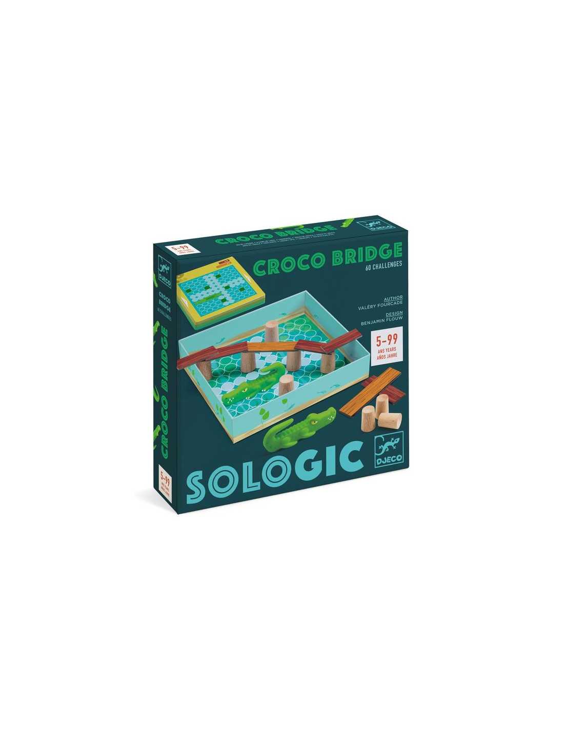 Découvrez Croco Bridge de la collection Sologic de Djeco, un jeu de logique avec 60 défis pour les enfants dès 5 ans. Un jeu haletant qui mêle logique, stratégie et réflexion, au contenu riche d’éléments. Comment rallier la rive du fleuve indiquée sans passer par-dessus les crocodiles affamés ?