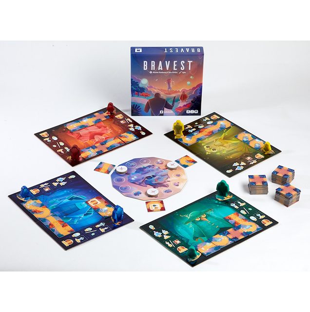 Chaque Brave suivra son propre chemin et marquera des points en fonction de ce qu’il croisera : l’Invincible doit affronter des créatures étranges pendant que l’Agile doit braver des lieux hostiles. Lorsque tout votre plateau est recouvert de tuiles, lancez vos braves sur leurs parcours et comptez vos points facilement à l’aide de la piste de scores.