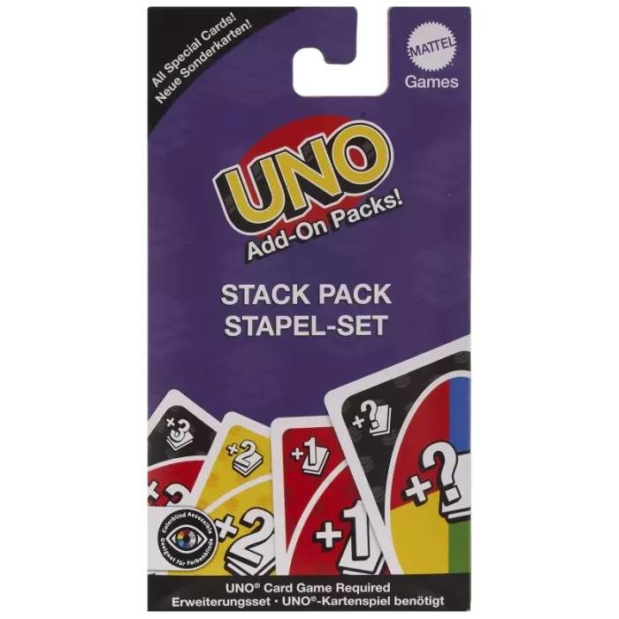 UNO : Cumul est une extension qui ajoute des cartes à votre jeu UNO classique, pour contraindre le joueur suivant à piocher es cartes OU les empiler sur une carte +2 ou +4 et ainsi augmenter la pénalité !