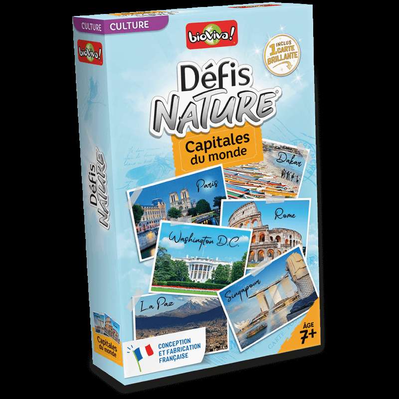 Défis Nature - Capitales du monde vous emmène à la rencontre des capitales emblématiques du monde ! Découvrez leurs caractéristiques, puis pariez sur leurs points forts pour collecter toutes les cartes du jeu et remporter la partie. Alors, prêts à relever le défi ?
