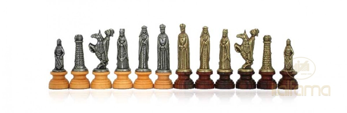 Pièces d’échecs en métal massif et bois, finitions artisanales, certifiées FABRIQUÉ EN ITALIE.