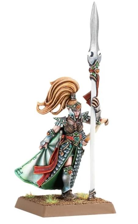 Les Suivantes de la Reine Éternelle sont des guerrières talentueuses qui ont juré de vivre et mourir au service de leur maîtresse. Ce sont des parangons de la race elfique et elles sont aussi douées dans les beaux-arts que dans celui de la guerre. Au combat, elles sont traitées avec un immense respect par les Hauts Elfes qui se battent à leurs côtés. La présence d’une Suivante est un signe fort de bénédiction de la Reine Éternelle, et un gage de victoire.