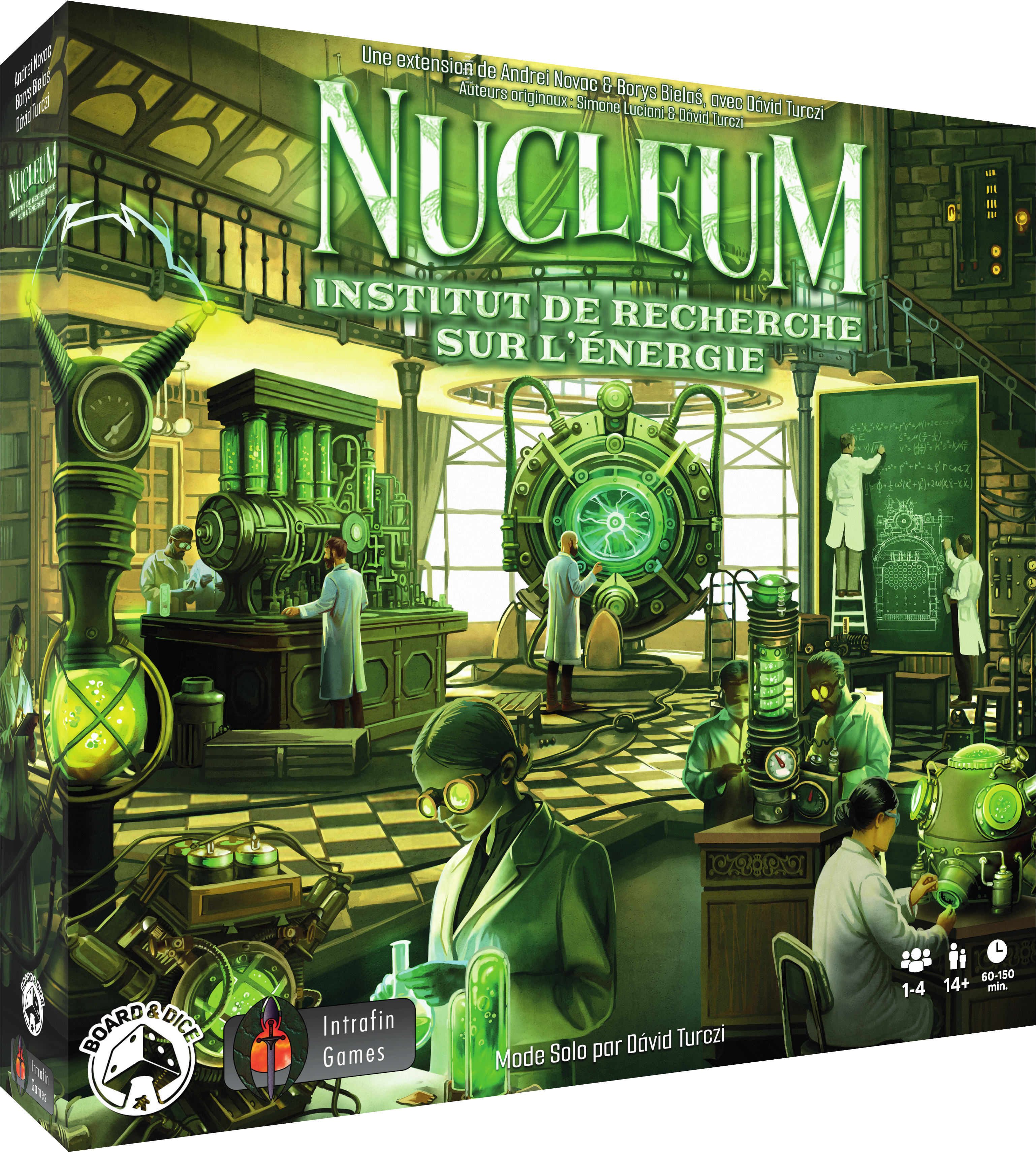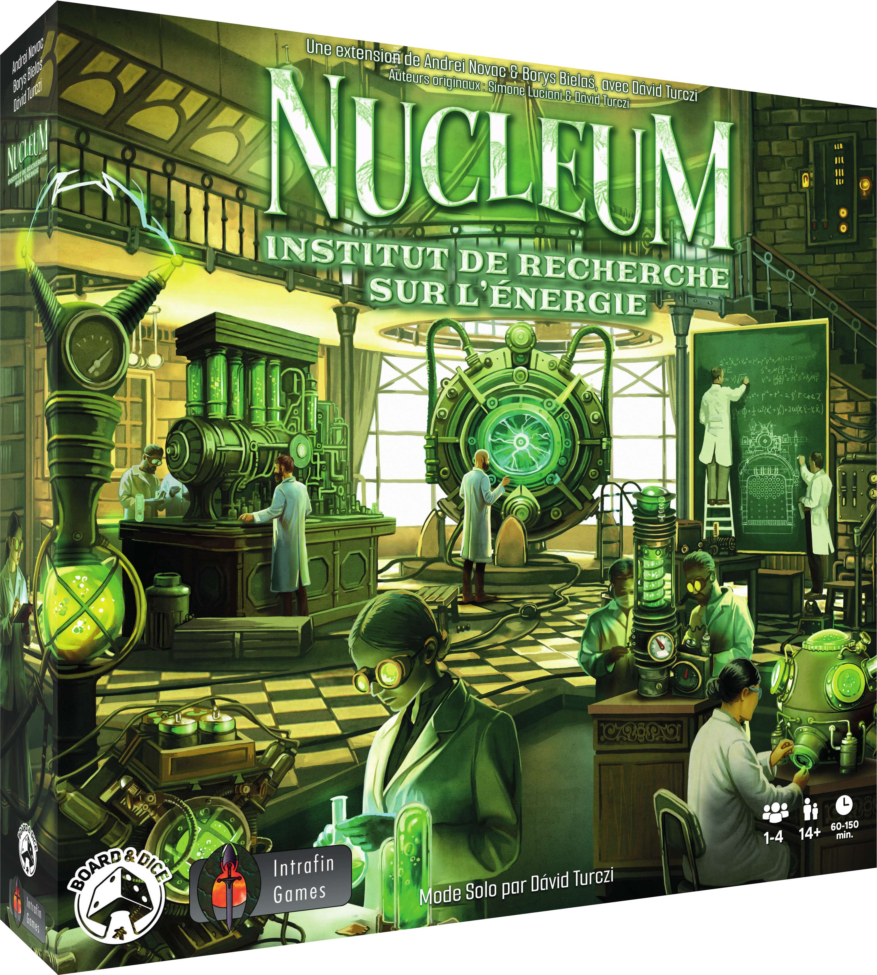 Nucleum : Energy Research Institute est une extension du jeu de base Nucleum et donne vie à 8 nouvelles expériences, ainsi qu’à des cartes Patron dotées de puissantes capacités. Toutes les nouvelles expériences sont également compatibles avec Nucleum : Australie, Nucleum : la Cour du Progrès, et Nucleum : Mécènes Extension.