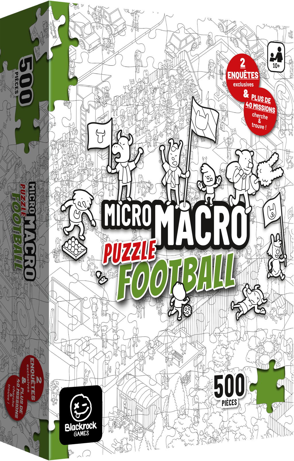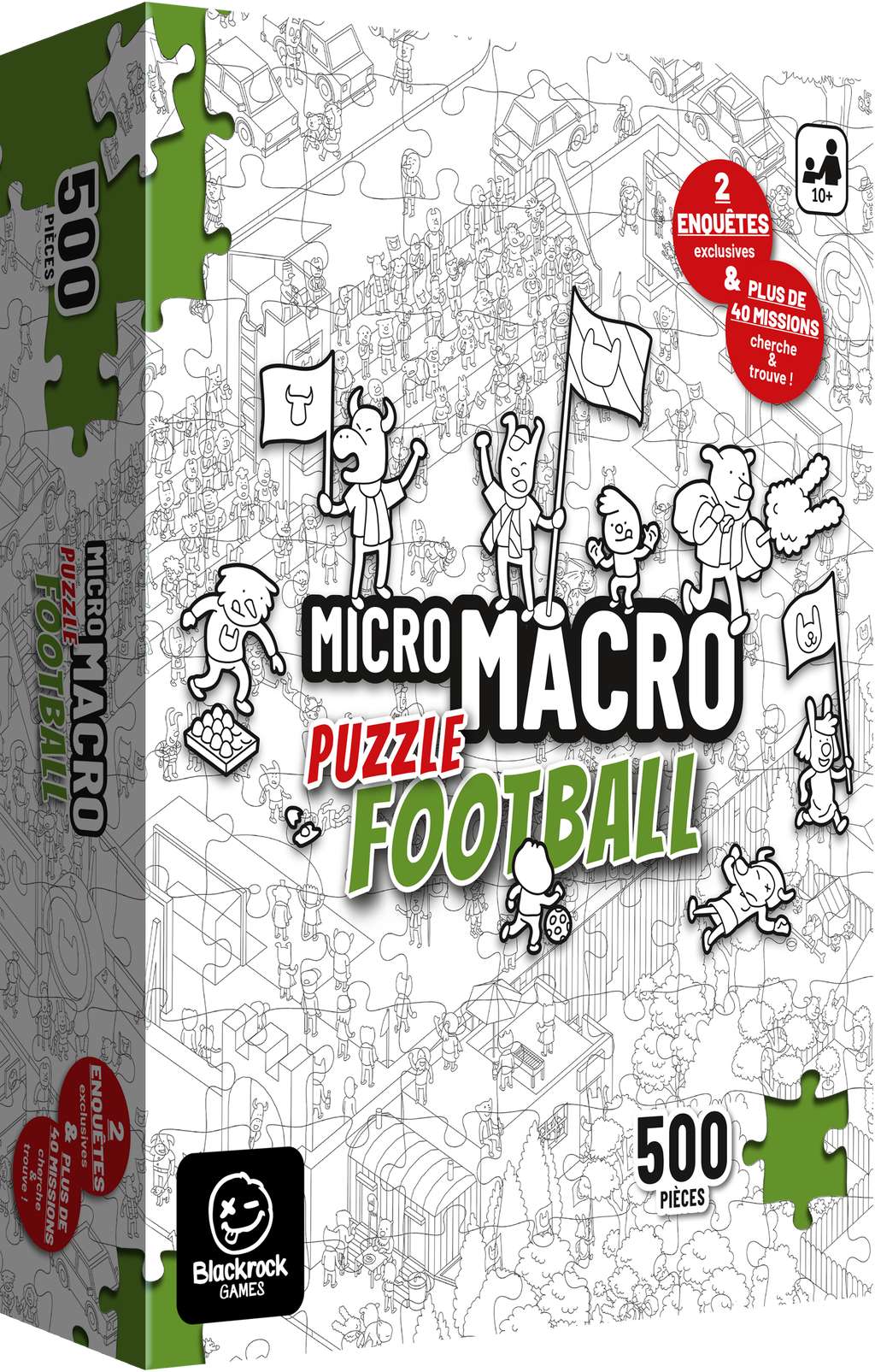 Dans ce puzzle de 500 pièces, vous découvrirez le plan détaillée du quartier de MicroMacro Full House, offrant une vue d’ensemble des rues et du stade de football.