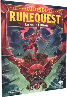 Chaque culte plonge profondément dans les cultes des dieux lunaires et fournit des mécanismes à chacune de leurs religions. Parmi les ressources, 15 nouveaux cultes, dont Jakaleel la sorcière, la déesse de la jeunesse Teelo Norri, le démon du Chaos, culte des sept mères, etc. Pour chacun, des détails de l’organisation, de l’histoire et de la nature uniques de chaque culte. Vous découvrirez aussi un nouveau système de magie lunaire unique, ainsi que des règles étendues pour la sorcellerie lunaire, l’histoire des dieux lunaires, de l’Empire lunaire, de l’Empereur Rouge et des détails pour s’aventurer à la surface de la Lune Rouge elle-même.