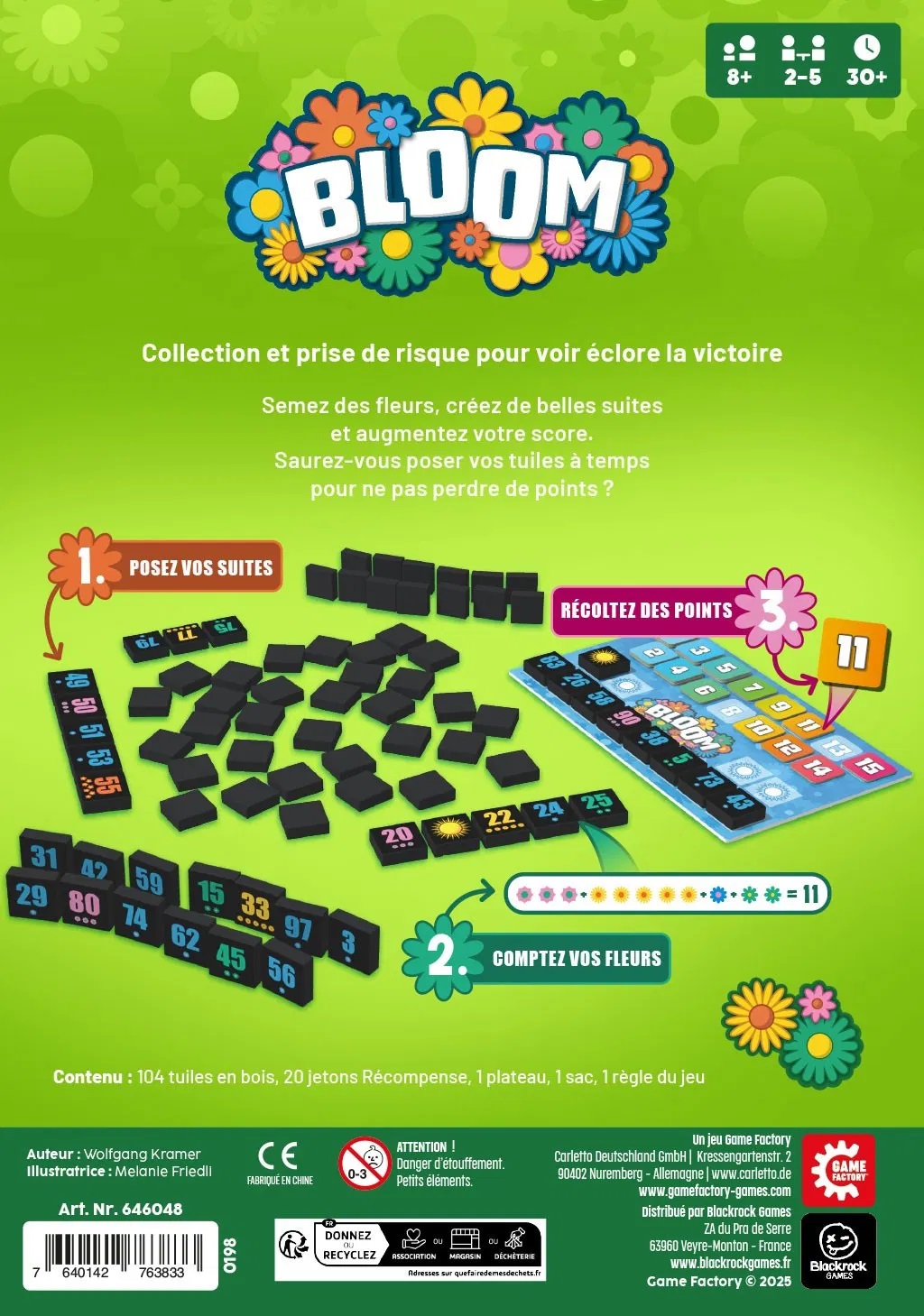Formez les plus belles suites de tuiles numérotées pour marquer un maximum de points en seulement deux manches. Dans ce jeu de stratégie et de réflexion, posez vos tuiles de manière stratégique, volez les meilleures combinaisons et gérez vos risques pour prendre l’avantage sur vos adversaires. Un jeu de société tactique et interactif, parfait pour les amateurs de gestion de tuiles, stratégie, réflexion et compétition.