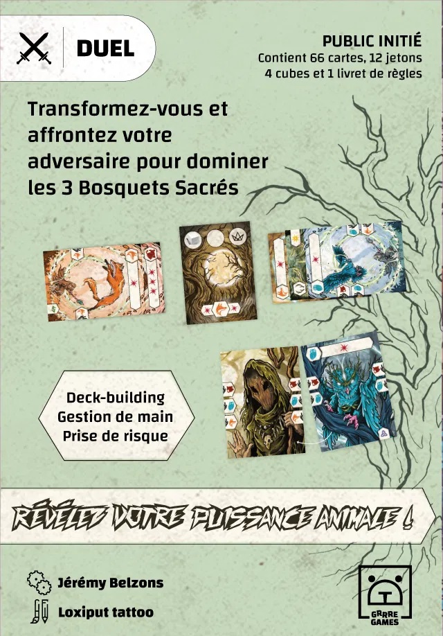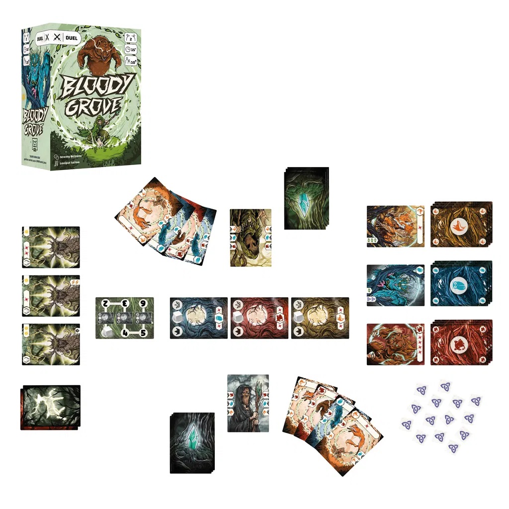 Bloody Grove est un jeu de cartes et d’affrontement stratégique pour 2 joueurs. Alliant deck-building et prise de risque, ce jeu de société immersif vous met dans la peau de puissants esprits animaux. Affrontez votre adversaire pour contrôler les 3 Bosquets Sacrés et déployer vos tactiques les plus audacieuses. Parfait pour les amateurs de jeux compétitifs, stratégies de deck et confrontations tactiques intenses.